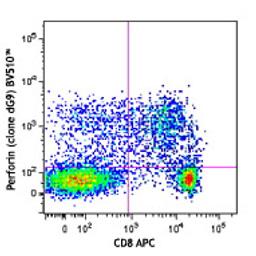 Brilliant Violet 510™ anti-human Perforin; Clone: dG9; Reactivity: Human, Cross-Reactivity: Bovine (Cow, Cattle); does not cross-react with mouse1.; Apps: ICFC; Size: 100 tests