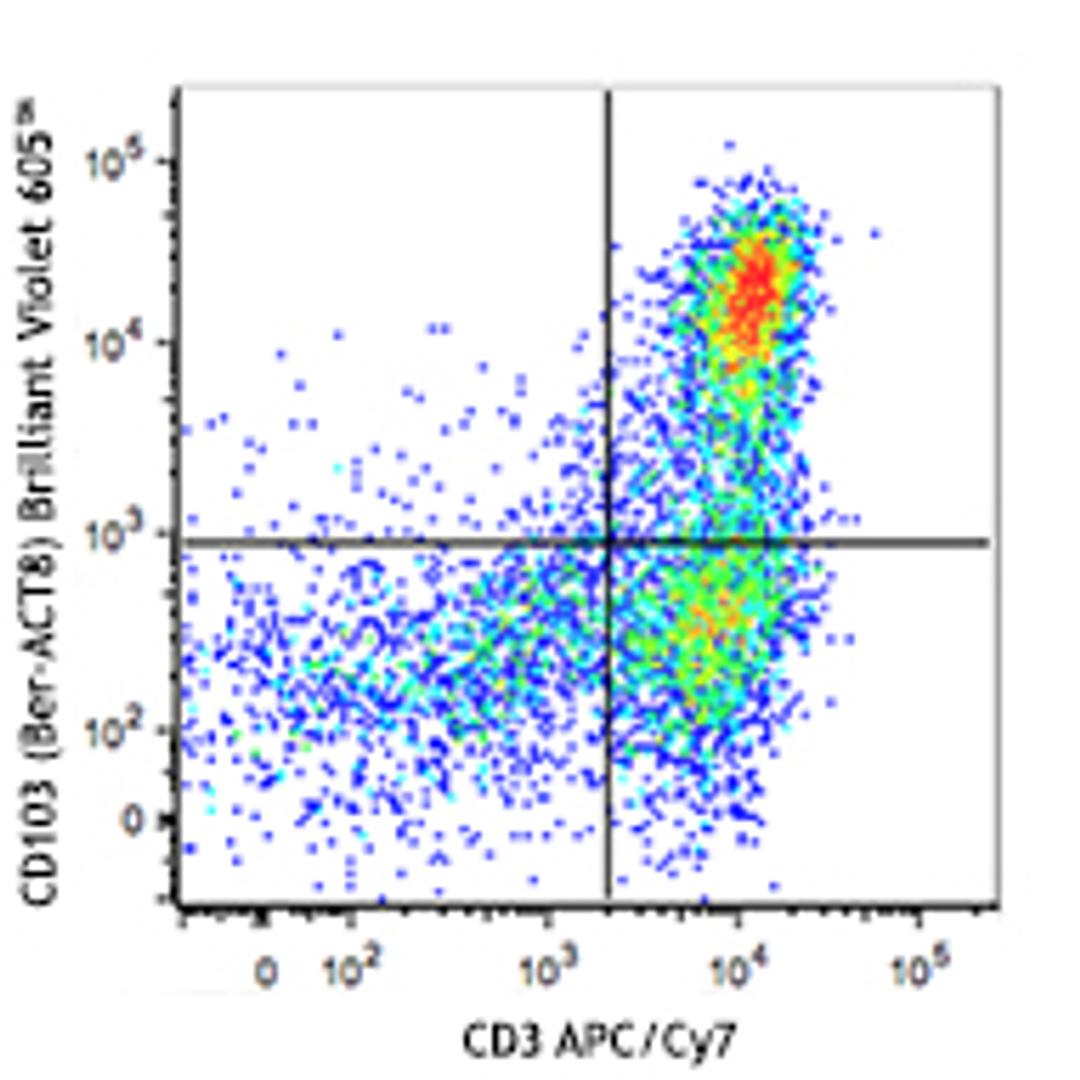 Brilliant Violet 605™ anti-human CD103 (Integrin αE); Clone: Ber-ACT8; Reactivity: Human, Cross-Reactivity: Cynomolgus; Apps: FC; Size: 100 tests