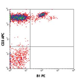 PE anti-human TCR γ/δ; Clone: B1; Reactivity: Human, Cross-Reactivity: Baboon, Chimpanzee, Cynomolgus, Pigtailed Macaque, Rhesus; Apps: FC; Size: 100 tests