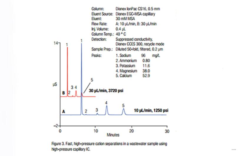Figure 1: Fast, high-pressure cation separations in a wastewater sample using high-pressure capillary IC1