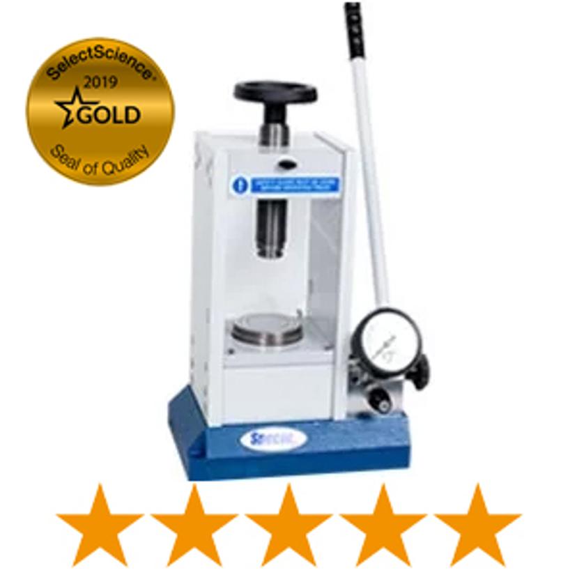 Powder materials have very small particle scales, so I need to make the particles into a bulk platelet. To do this, I use the Specac Atlas Manual Hydraulic Press to make the powder into flat pellets. Based on the flat pellet surface, I can then capture the image and get other information, such as the electrochemical and the mechanical properties of each particle. I can also check the morphology evolution of the electrode during the electrochemical cycling.