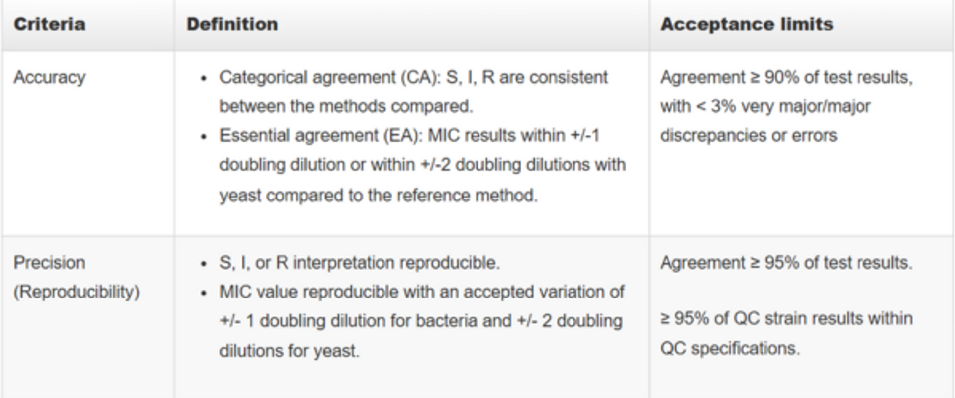 Verification is required by various guidelines, such as ISO 15189 standard3, EUCAST4 and regional recommendations5, when a system is introduced into the laboratory for the first time to either measure an analyte previously unknown to the laboratory or to compare the new system to an existing system already in use. CLSI document M521 describes a detailed protocol on Verification of commercial microbial identification and antimicrobial susceptibility testing systems.