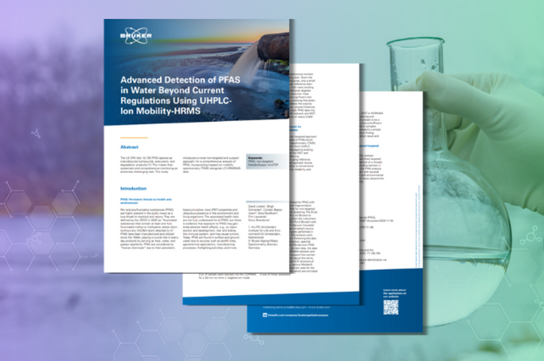 Transform your PFAS water analysis using trapped ion mobility spectrometry (TIMS) alongside LC-HRMS/MS data. Explore this resource to learn more about this novel, non-targeted approach, that enables the detection and identification of a wide number of PFAS including isomers in complex matrices.