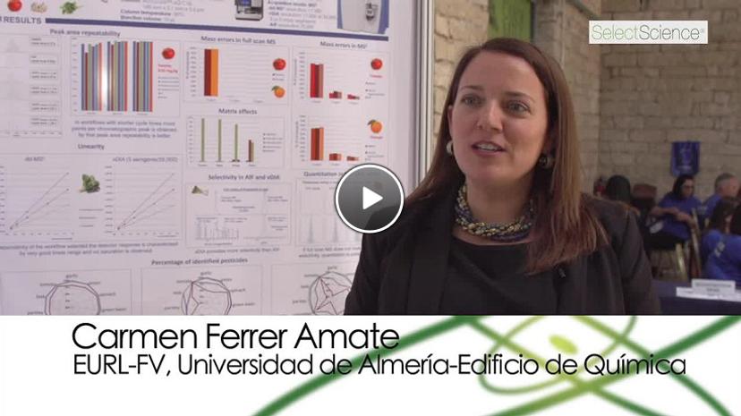 In this interview, Carmen describes the research with the Pesticide Residue Research Group, at the University of Almería, where they used a Thermo Scientific™ Q Exactive™ Focus Hybrid Quadrupole-Orbitrap™ Mass Spectrometer to evaluate three different simultaneous MS and MS/MS workflows. She explains that the first workflow employed targeted data dependent MS/MS, while the second and third workflows were non-targeted, using all-ion fragmentation (AIF) and variable data-independent acquisition (vDIA) methods. The experiment involved spiking of 166 pesticides into 11 different fruit and vegetable matrices, before analysis to determine mass errors, matrix effects, linearity of results, repeatability and identification rates.