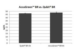 - Replaces Qubit® dsDNA BR Assay Kit for cost savings