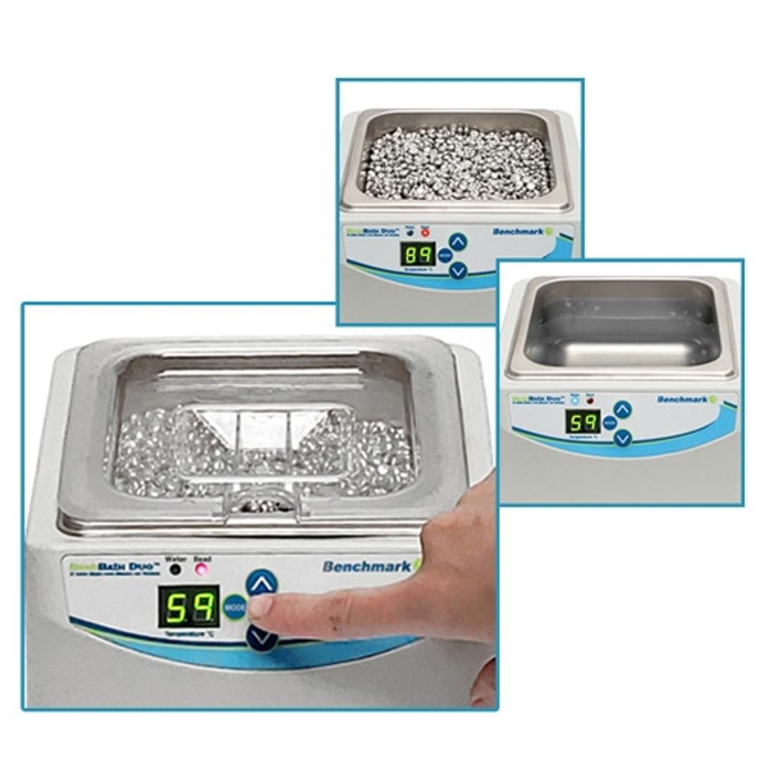 While the majority of research laboratories today are using water baths, many prefer the convenience of bead baths due to the advantages listed below. With the BeadBath Duo, the lab gets the best of both worlds, allowing conversion from one bath type to the other, with the simple press of a button.