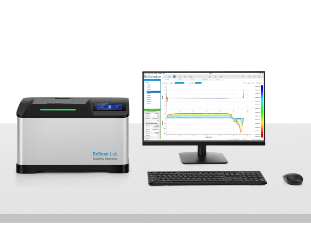 BeScan Lab, the versatile, sensitive, and reliable stability analyzer based on Static Multiple Light Scattering (SMLS) technology, is widely used in the formulation development and product quality control. It accommodates a wide range of sample concentrations up to 95% v/v and types such as emulsions, suspensions, and foams, with temperature scanning capabilities reaching up to 80 °C. BeScan Lab provides both qualitative analysis and quantification of destabilization, helping you monitor long-term product stability and achieve optimal shelf life.