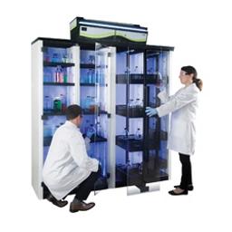 Best suited for the storage of liquids or powders. Choose a HEPA or carbon filter. Includes a sampling port, locking double doors for easy access, adjustable shelves with built-in spill tray, and a published chemical listing with the retention capacity of the filter.