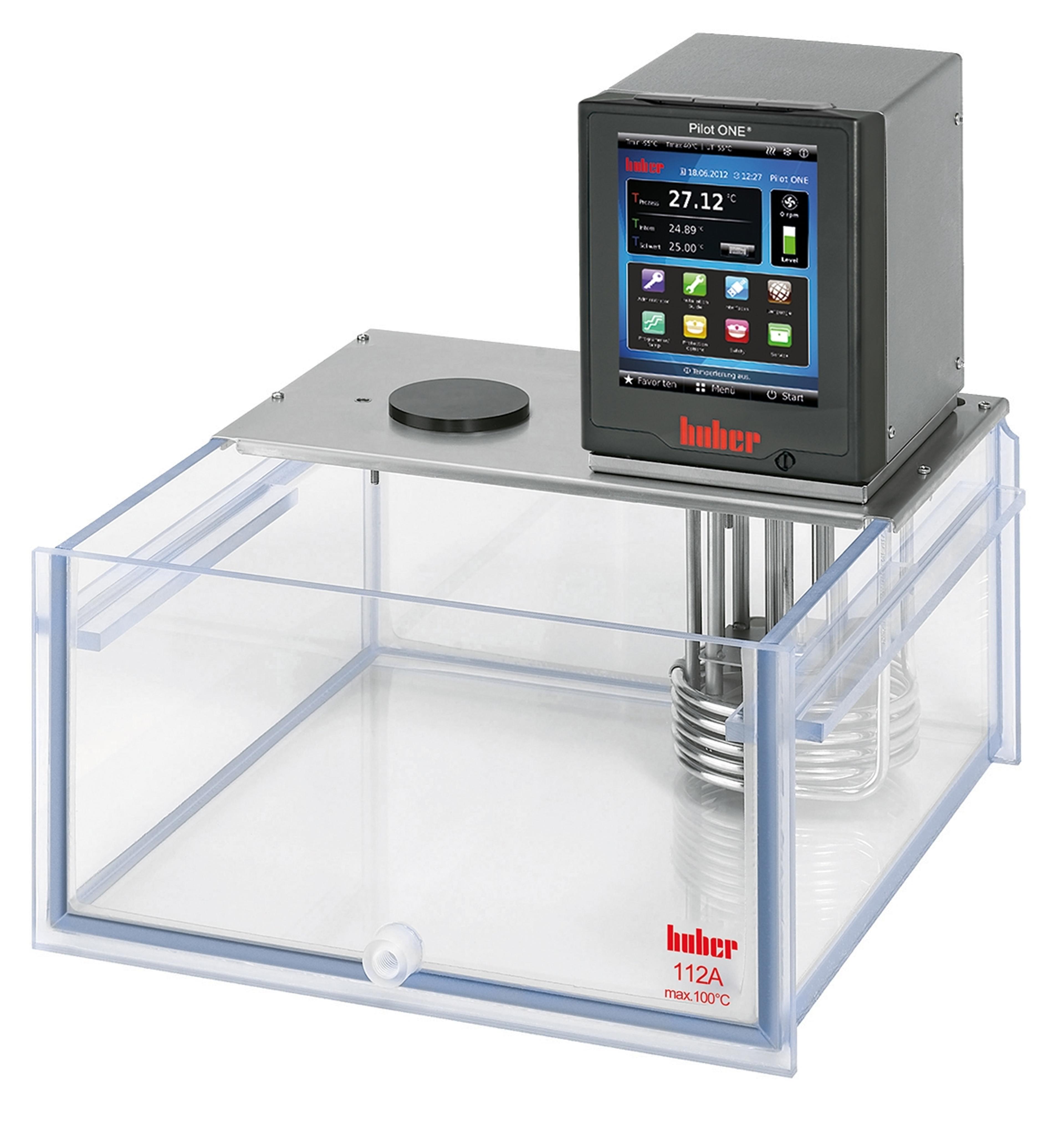 Heating circulation bath thermostats with baths made from polycarbonate or stainless steel are simple to use and are suitable for many applications such as: sample temperature control, analysis, materials testing or checking food. The units offer high temperature stability and are fitted with overtemperature and low level protection suitable for Safety Class III/FL (DIN 12876) for use with flammable fluids. A powerful pressure/suction pump ensures optimal circulation and temperature homogenity in the bath and also allows temperature control of externally attached applications using a pump adapter (accessory). The products are rounded off with a range of accessories including inserts, variable adjustable platforms, bath covers, probes as well as hoses, temperature control fluids and various adapters.