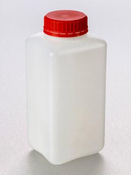 Corning® Gosselin™ Square HDPE Bottle, 2 L, Graduated, 58 mm Red Tamper-evident Cap with Wad, Non-assembled, 50/Case