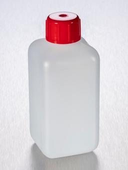 Corning® Gosselin™ Square HDPE Bottle, 250 mL, 20 mm Red Cap, Assembled, 208/Case
