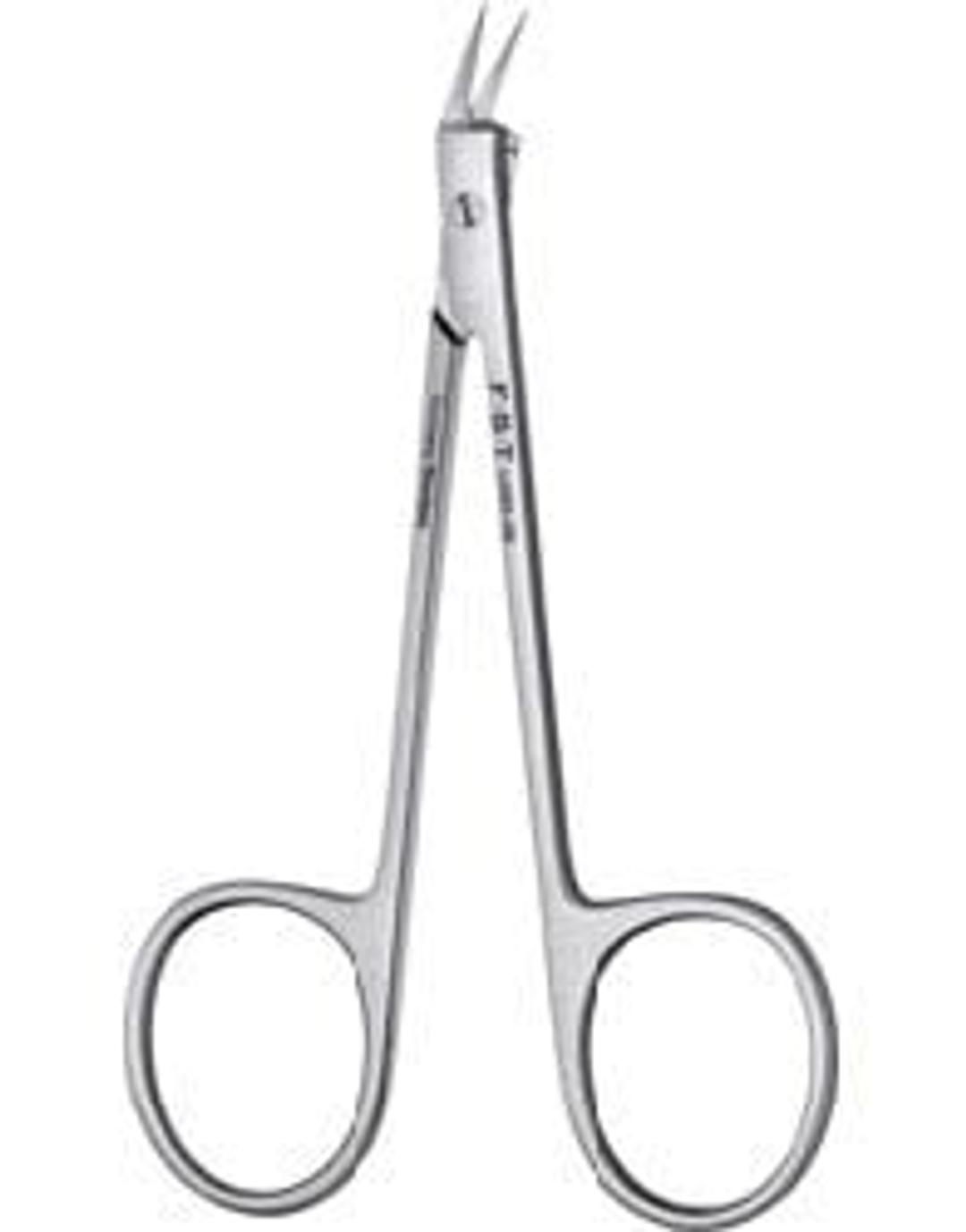 Dissector Scissors have slim blades for cutting tissue and strong blades for cutting fine bone. Composed of stainless steel with angled tips.