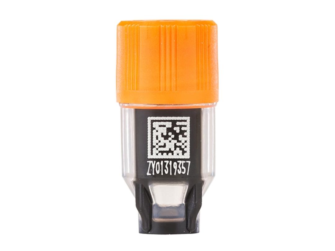 • Each tube features a permanent 2D code laser etched on the tube base, and a permanent 2D code and human readable number laser etched on the tube side ensuring a permanent link between sample and data