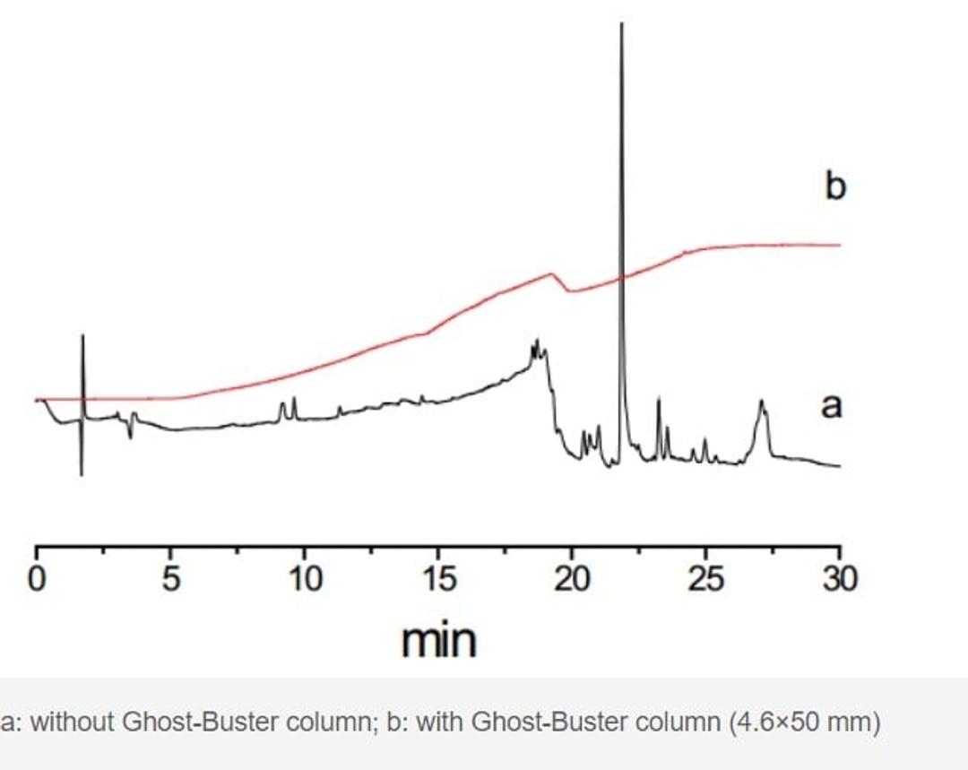 Welch Ghost-Buster column can efficiently adsorb and remove the impurities from mobile phase to eliminate their interference to the target peaks. Installed between the gradient mixer and the sampler, Ghost-Buster column can trap most ghost peaks before HPLC analysis.