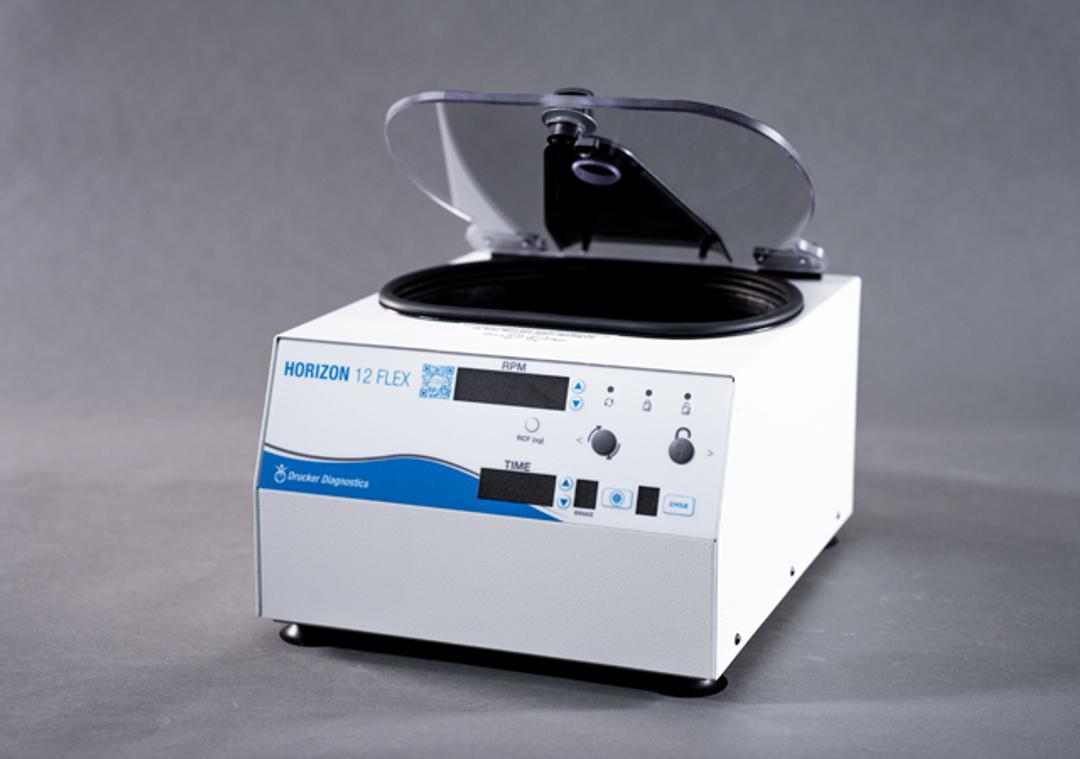 The HORIZON 12 Flex centrifuge is designed to satisfy the most diverse processing requirements of the routine lab, especially when space is tight. Program and save up to ten (10) custom time, RPM, and g-force settings with the easy-to-use interface and backlit digital display. The automatically locking lid flashes to indicate the status of each cycle for safer and more efficient processing, even in the noisiest lab.