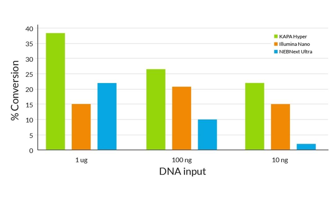 - Fewer cycles of amplification with KAPA HiFi DNA Polymerase results in lower duplication rates and improved coverage