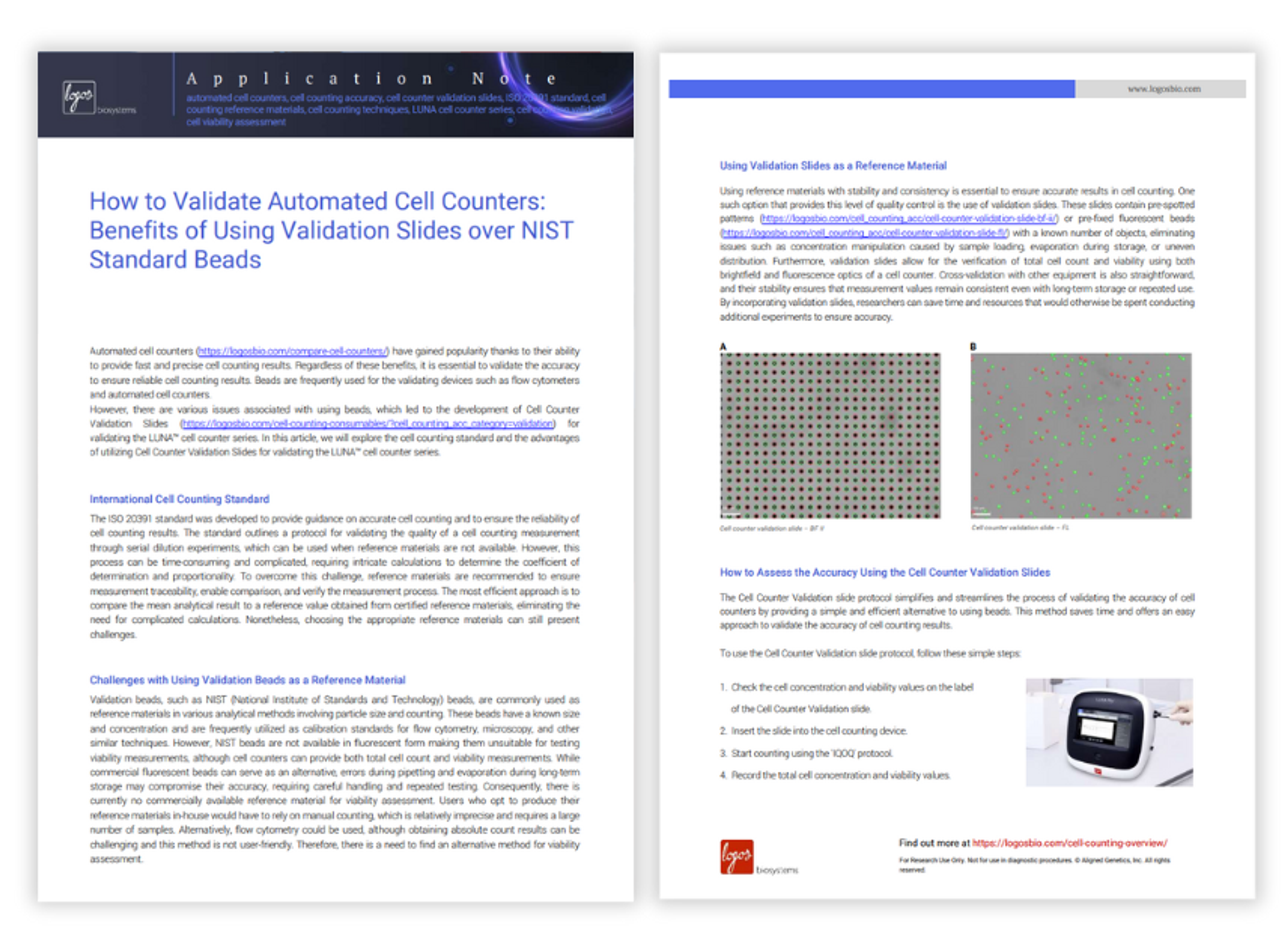 Logos BiosystemsAccurate cell counts in as little as 7 seconds: Fast, accurate, and affordable automated cell counters from Logos Biosystems.