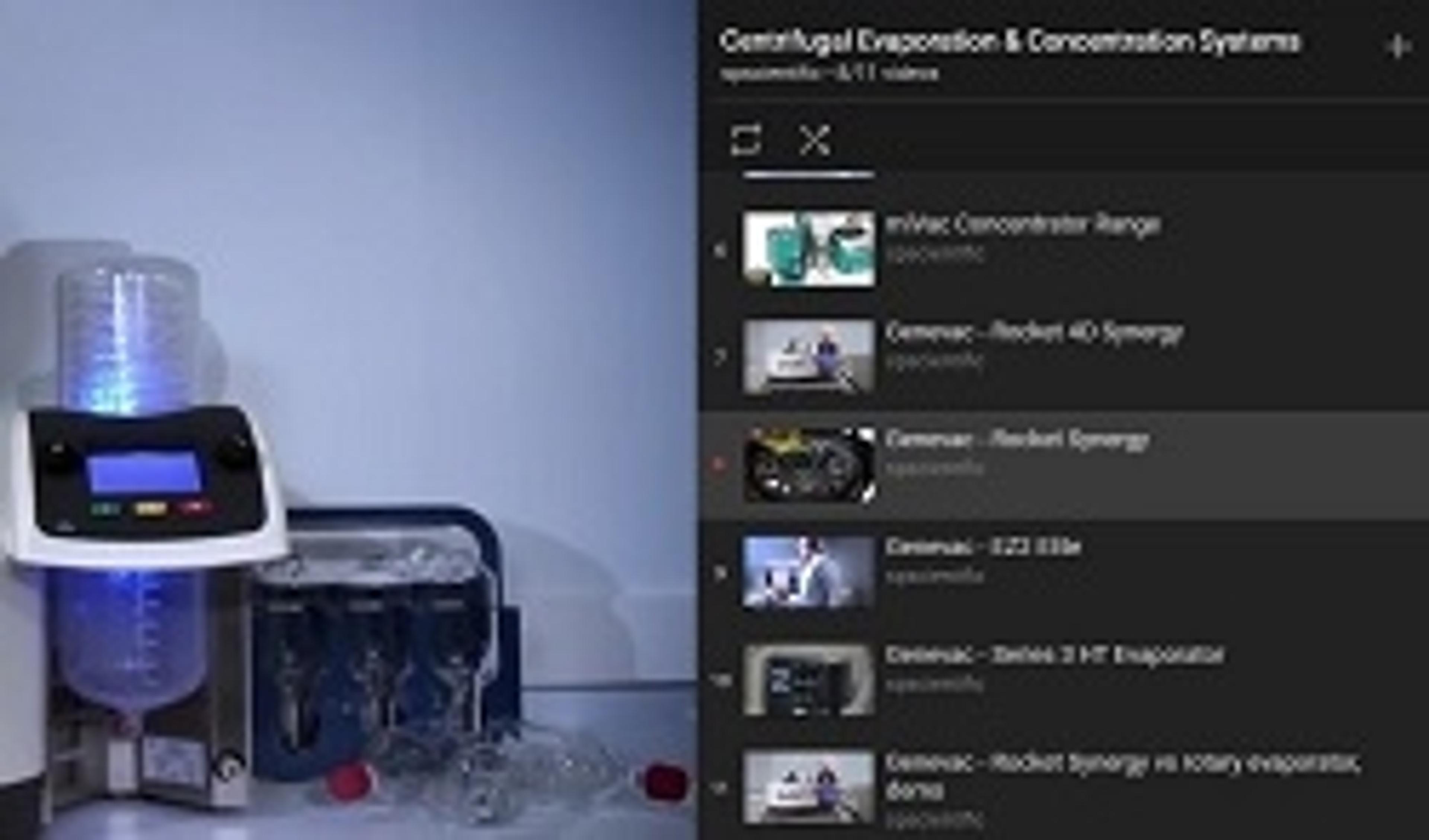 Rocket Evaporators use patented vacuum technology to evaporate solutions to dryness, or a concentrate, rapidly and safely. The latest Synergy series offers integrated, flexible solutions for processing a wide range of sample volumes. Interchangeable rotors will accommodate tubes, flasks and batch volumes of up to 100L. Rocket Synergy is designed primarily to quickly process larger volumes of solvent in parallel and witho…