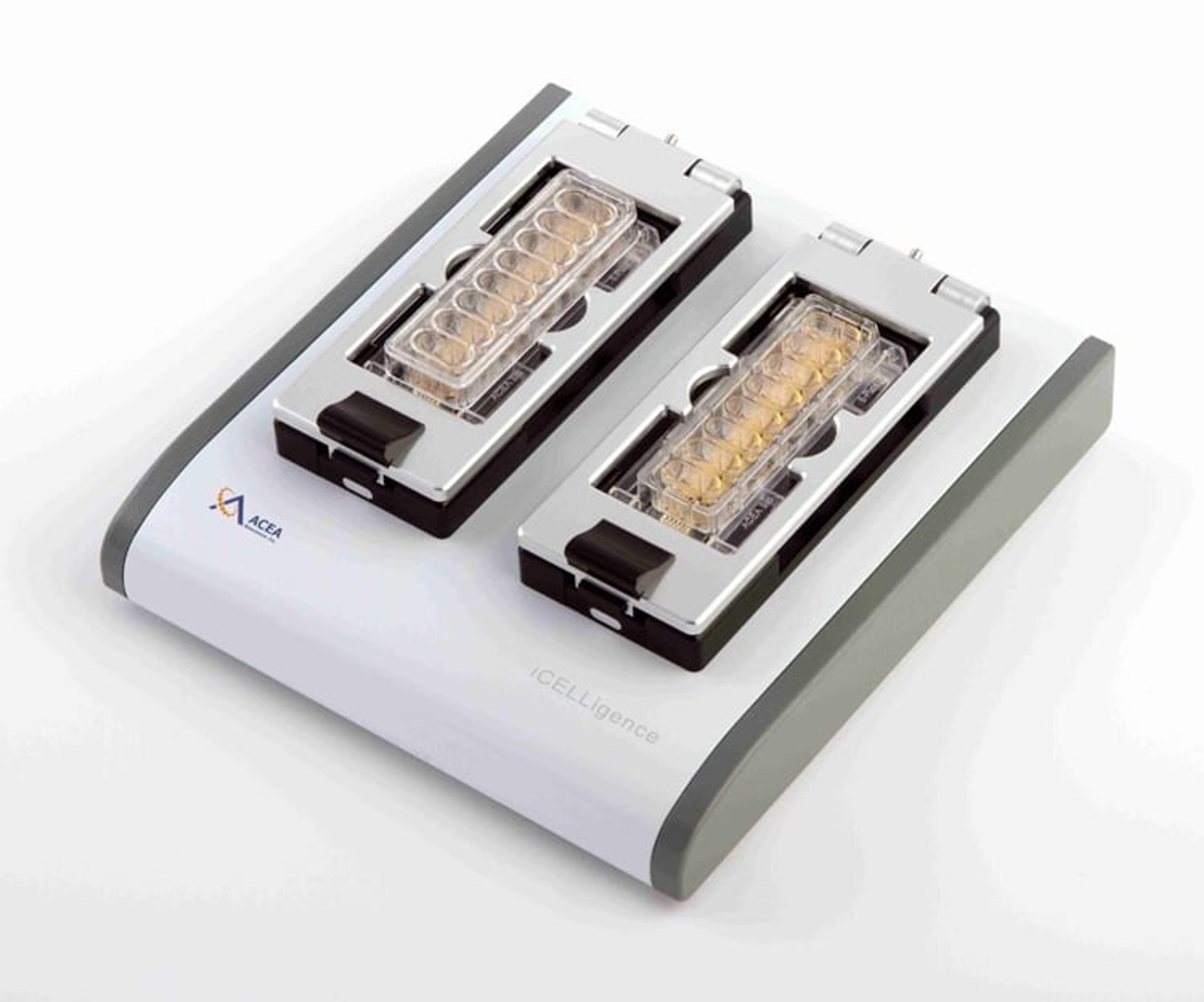 The RTCA iCELLigence™ instrument uses noninvasive electrical impedance monitoring to quantify cell proliferation, morphology change, and attachment quality in a label-free, real-time manner. The instrument is placed in a standard CO2 cell culture incubator where it transmits data wirelessly to the Control Unit (an iPad housed outside the incubator). User friendly software allows for real-time interfacing with two separate electronic 8-well plates, and includes real-time data display and analysis functions. The larger well size in these plates provides enough cells for complementary assays including western blotting, sequencing analyses, FACS, imaging, etc.