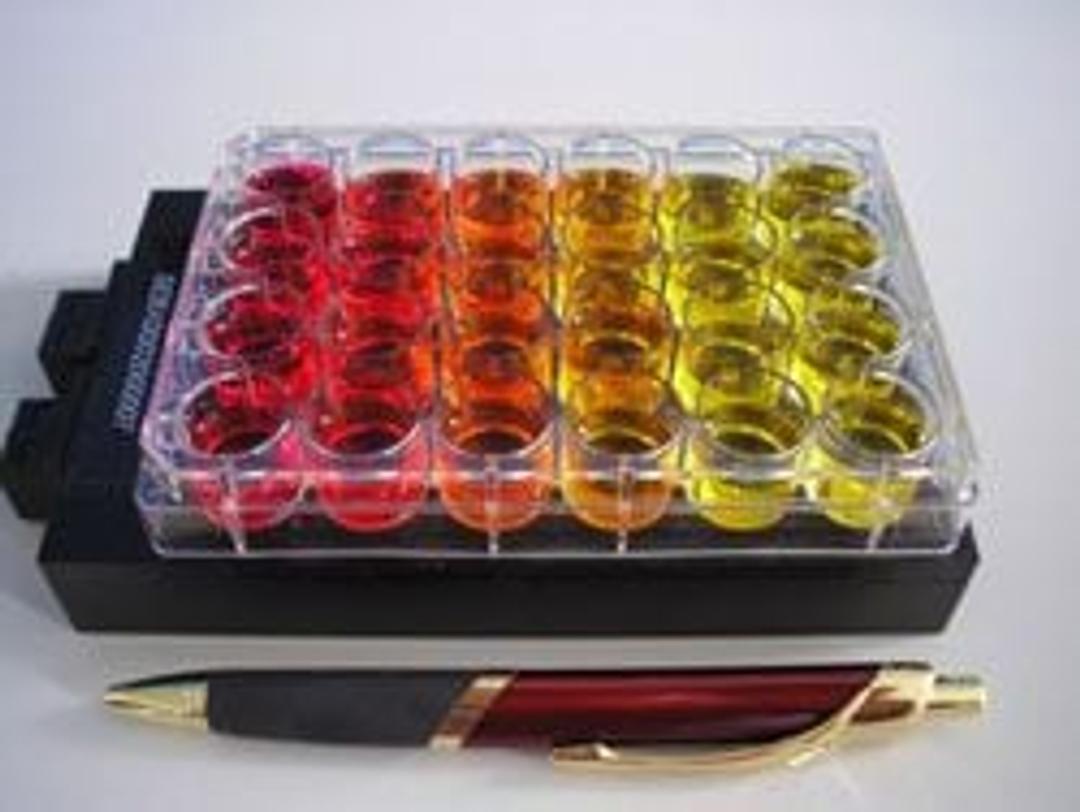 The system consists of two components: The sterile 24-well culture plate with integrated optical-chemical pH- or oxygen sensors (Hydro®- and OxoDish®, both disposables) as well as the SensorDish® Reader. The SensorDish® Reader communication software displays the pH and oxygen value of each sample immediately. The pH is displayed with a resolution of ± 0.05 pH units between pH 6.0-8.5, the oxygen content with a resolution of ± 2 % air saturation. Calibration by the user is not required. One PC controls up to 10 SensorDish® Readers with a total of 240 samples for extensive, parallel screening tests.