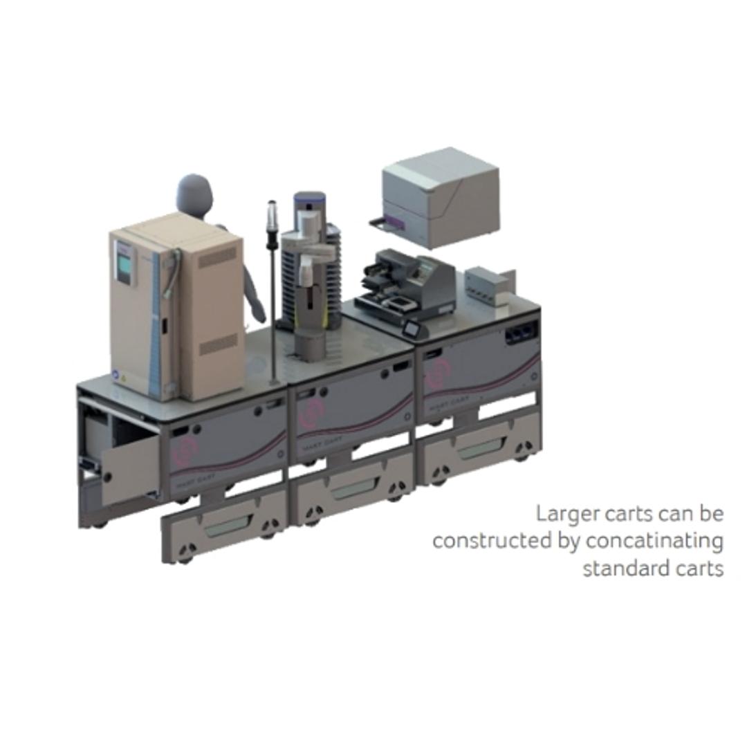 Smart Cart is a fully mobile life support system for lab equipment or lab robots. It reimagines what modular automation is eliminating the need for locating high-value equipment into static automated workcells. It provides the foundation for a more productive, efficient & dynamic use of instrumentation.