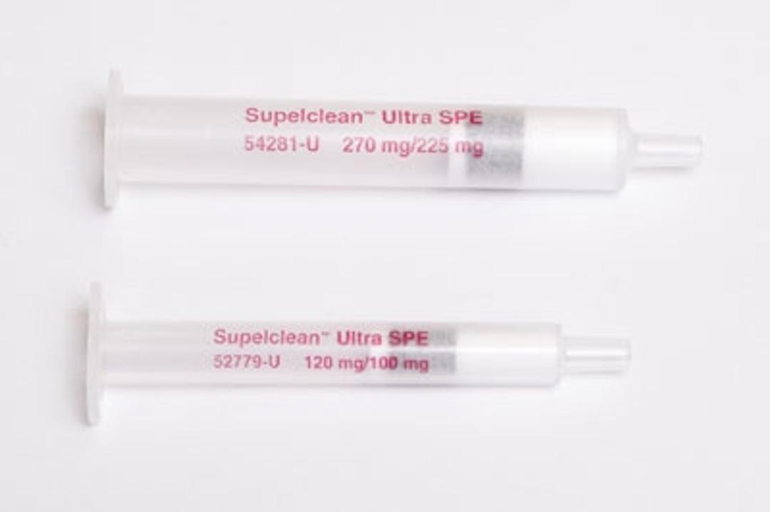 This multi-bed solid phase extraction (SPE) cartridge was designed for the cleanup of extracts of difficult matrices such as dry commodities (tea, spices, coffee, etc.) prior to pesticide residue analysis, typically performed by GC/MSMS and LC/MS/MS. These types of samples can contain pigments and oils, and may not be sufficiently cleaned using a standard QuEChERS cleanup.