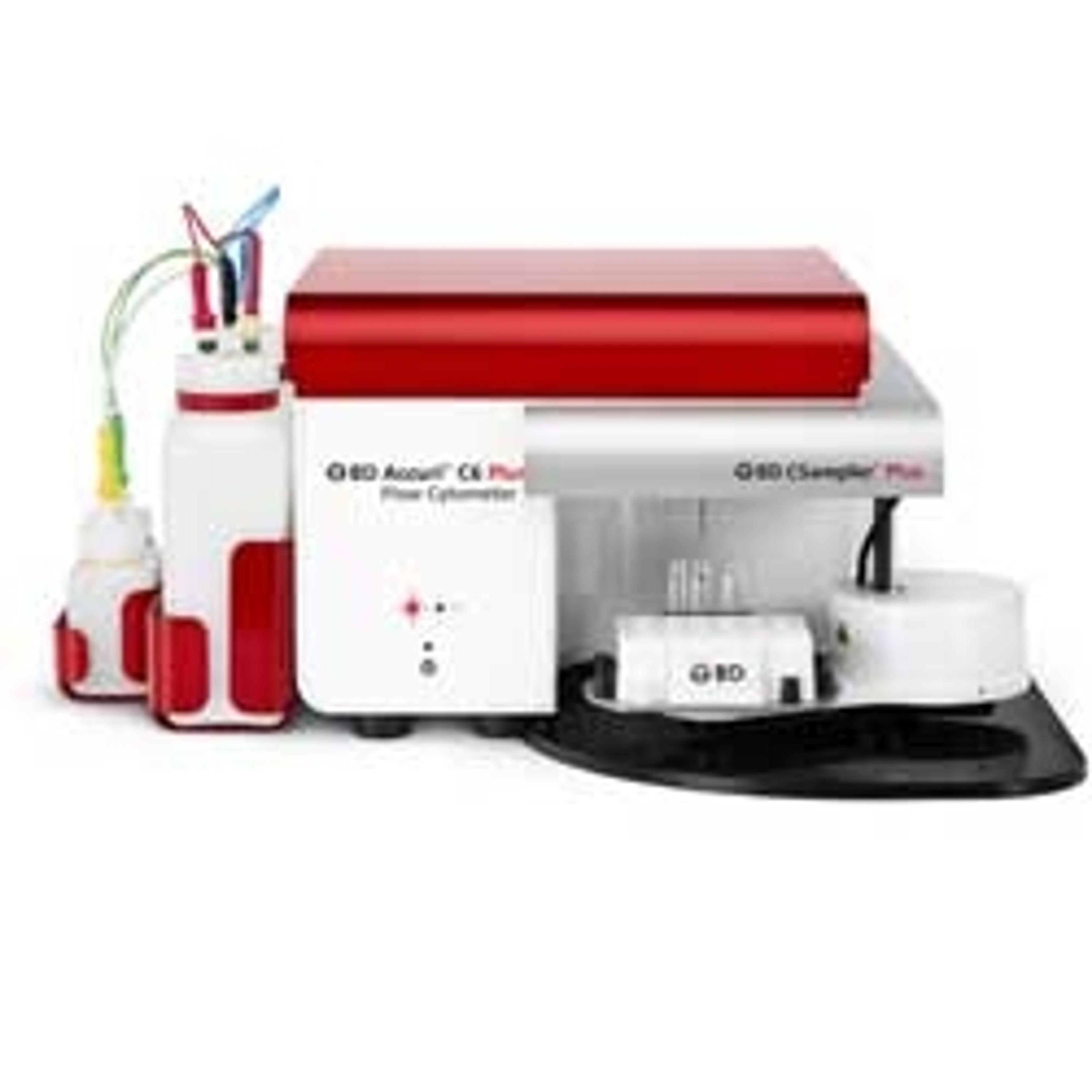 BD BiosciencesThe BD Accuri™ C6 Plus personal flow cytometer is the newest generation of the BD Accuri™ platform. Enhanced sensitivity, reliability, and capabilities bring flow cytometry even more within reach for new and experienced flow cytometry researchers. With its compact 11 x 14.75 x 16.5-inch footprint, light weight of 30 lb, and operational simplicity, the BD Accuri C6 Plus supports a wide array of applications including immunol…